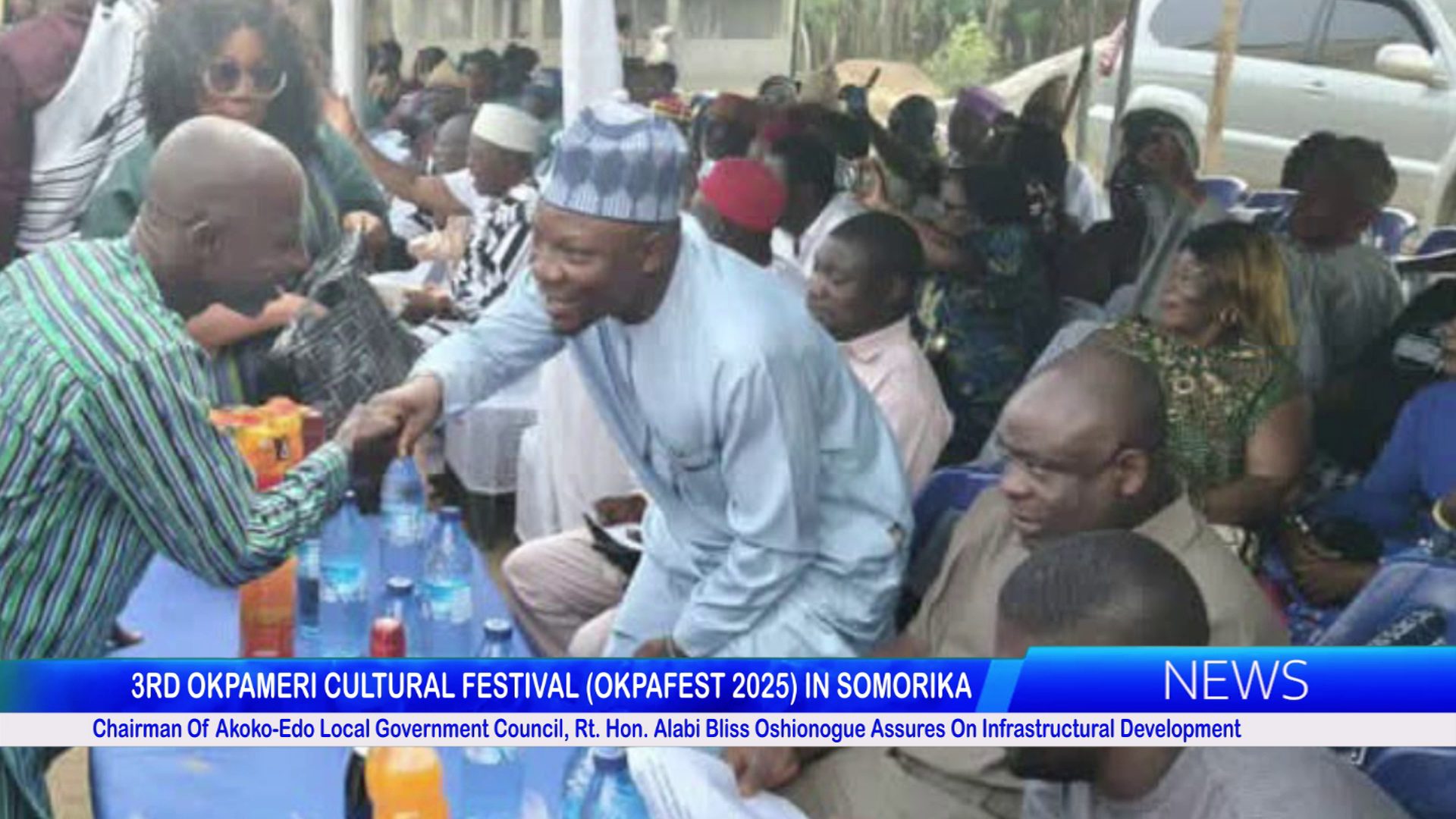 Chairman of Akoko-Edo Local Government Council, Rt. Hon. Alabi Bliss Oshionogue attended the 3rd Okpameri Cultural Festival (Okpafest 2025) in Somorika, reaffirming his administration’s commitment to grassroots integration through cultural heritage.