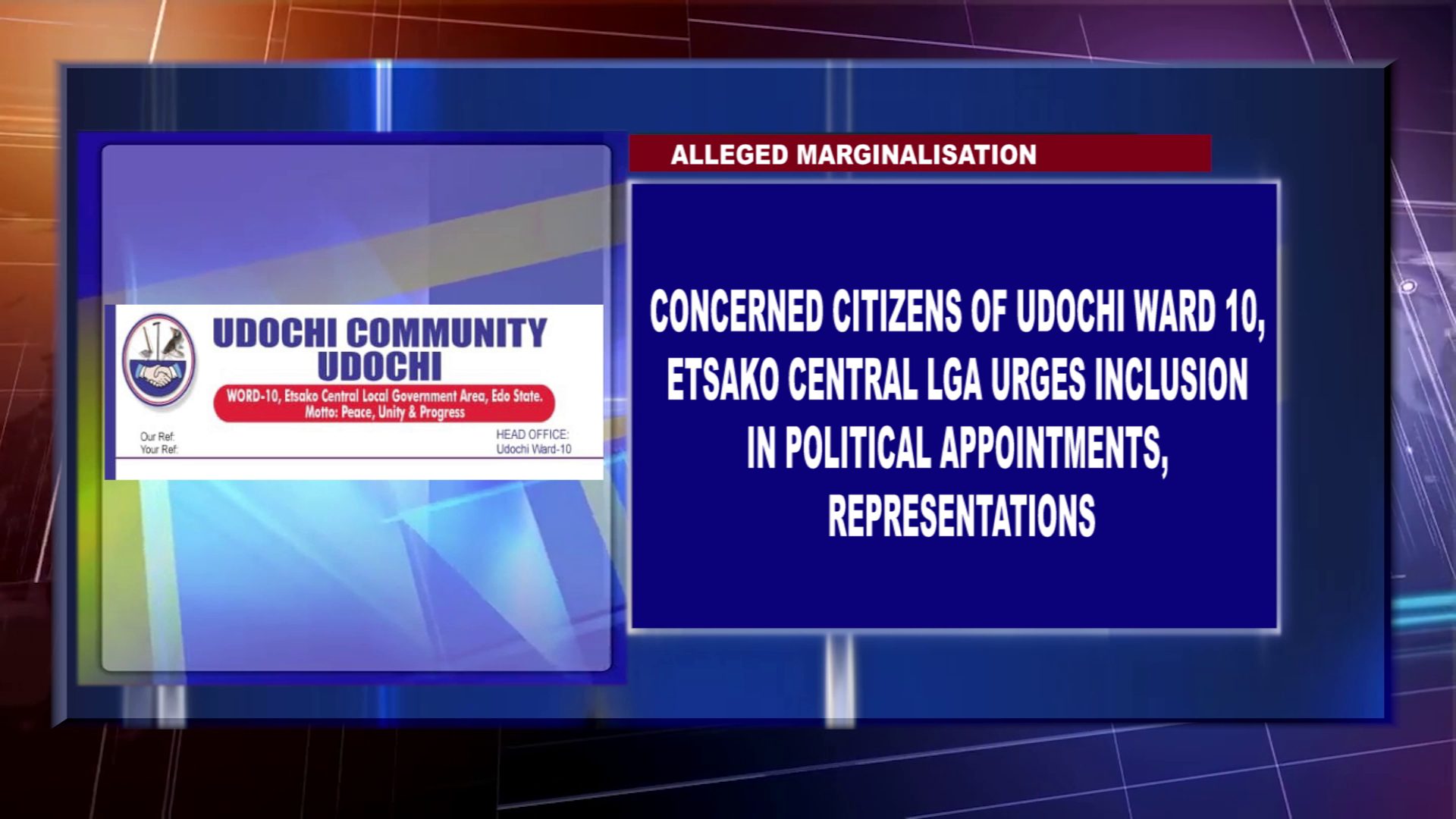 A socio-cultural group under the aegis of Concerned Citizens of Udochi Ward Ten in Etsako-Central Local Government Area, Edo State, has expressed disappointment and concern over the alleged marginalisation of the ward in the state’s political landscape.