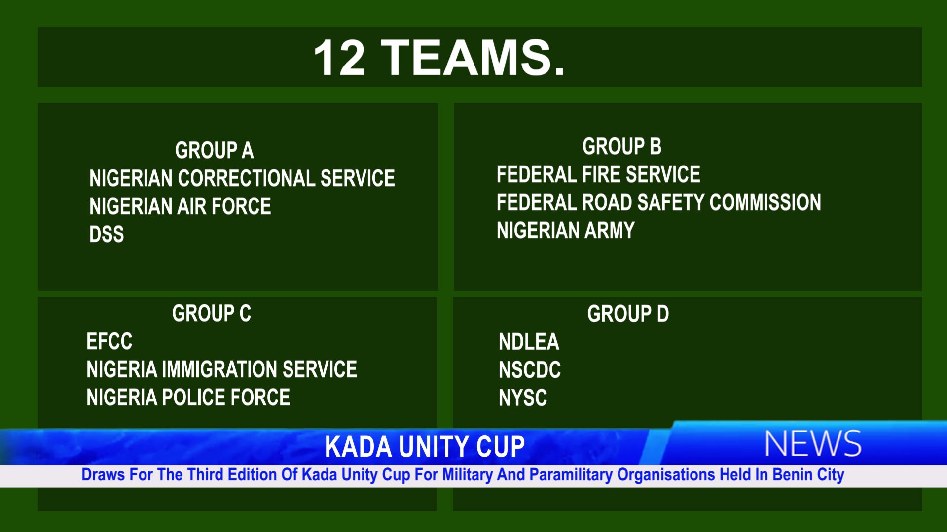 The draws for the third edition of the Kada Unity Cup for military and paramilitary organisations, scheduled to kick off on the 1st of February 2026, have been conducted in Benin City.