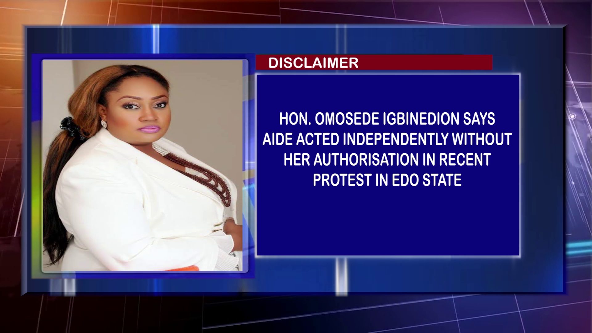 Rt. Hon. Igbinedion says the disclaimer is necessary to prevent any misunderstanding regarding her position on the ongoing protests.