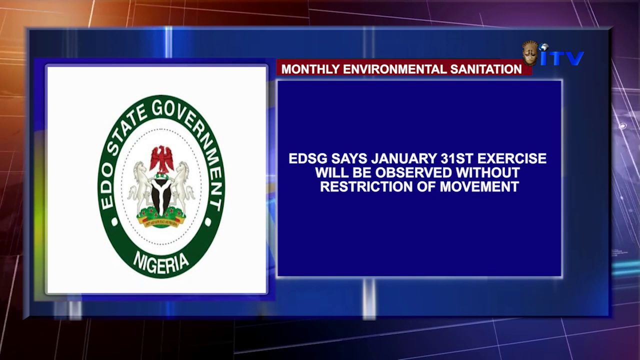 Edo State Government says the monthly environmental sanitation exercise will be observed across the state on Saturday, 31st January 2026.